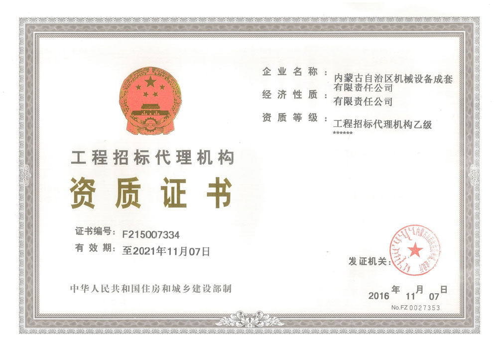 中央投資項目招標代理機構(gòu)甲級資格證書